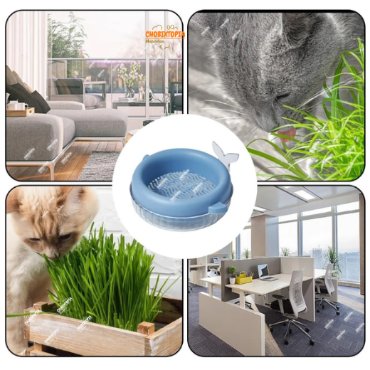 HIERBA GATERA MACETA BALLENA PARA GATOS - CELESTE